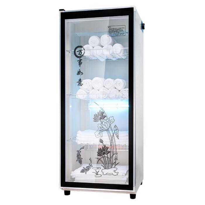 This towel cabinet holds approximately 3 dozen towels at full capacity and keeps towels warm at constant 82-85 Celsius degree for hygienic treatment, with UV lamp for sterilizing