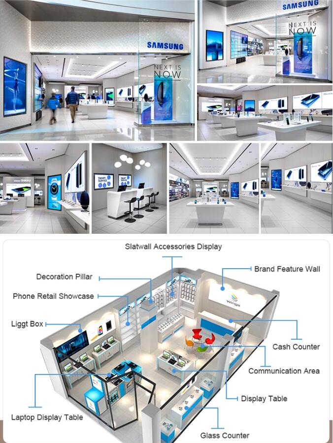 Electronics Repair Cell Phone Accessory Display Rack Mobile Phone Shop Interior Design Decoration