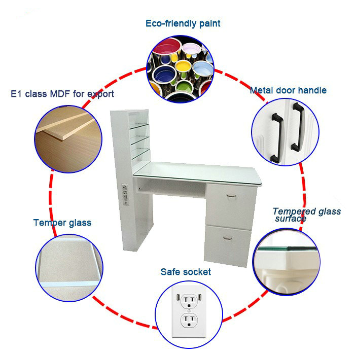The Mona Lisa Manicure Table is the epitome of contemporary style and great functionality. This ultra chic manicure table features a backlit nail polish rack, glass top work surface and full extension glides for the storage drawers. The glass work surface makes for great durability and it not only looks great but makes cleaning a breeze as well. The sleek modern design makes the Mona Lisa a perfect manicure table for those who demand functionality mixed with unparalleled style. The Mona Lisa Manicure table also offers great design continuity with the matching Mona Lisa Single and Double Styling Stations.