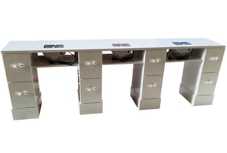 The White 3 seaters nail bar tables manicure stations is available in 20 popular laminates with any two-tone color combination. The Bali manicure table features a large easy to clean work surface and three large storage drawers all outfitted with brushed metal hardware. For functionality and longevity, each drawer on the Bali Manicure table is fitted with full extension slides. To make things even easier, this table ships to you fully assembled, ready to go into service. This China Made manicure table will last for years and make a great impression at your salon or spa.